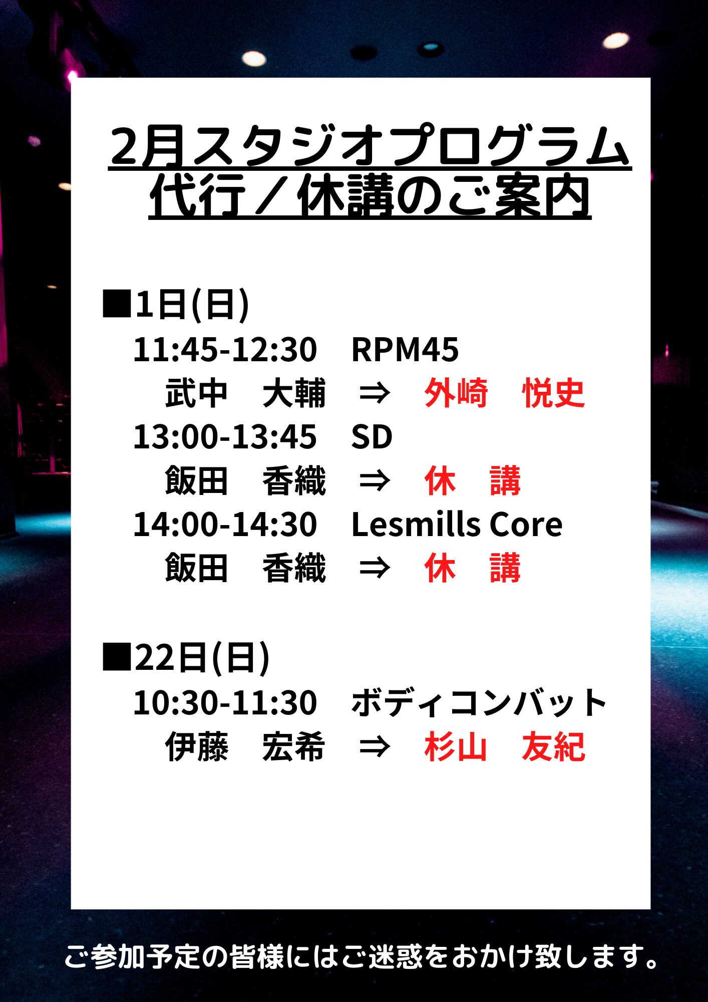 少しの変化、それは一歩ずつ強くなっている証なんだ。 A little change, that's a sign that we are getting stronger step by step. まずは無料体験へ VOICE 2024.09.25 準備中 一覧はこちら About us もっと、もっと前に進め。 人間は怠惰だ。だから必死に向き合う。それがいつだってかっこいいと我々は思う。形じゃない、スタンスだ。そして、そこに意味がある。 我々の想い~詳細へ~ Service Menu 提供できるサービス 詳しくはこちら Program 20種類超のプログラム 詳しくはこちら Voice 会員様のお声 詳しくはこちら Contents スケジュール関係 2月祝日タイムスケジュールのご案内 2026.01.29 スケジュール関係 2月追加クラスのご案内 2026.01.29 スケジュール関係 2026年2月通常タイムスケジュール代行/休講案内 2026.01.29 スケジュール関係 2026年1月通常タイムスケジュール代行/休講案内 2025.12.26 スケジュール関係 2026年1月-3月スタジオ通常タイムスケジュールのご案内 2025.12.26 もっと見る