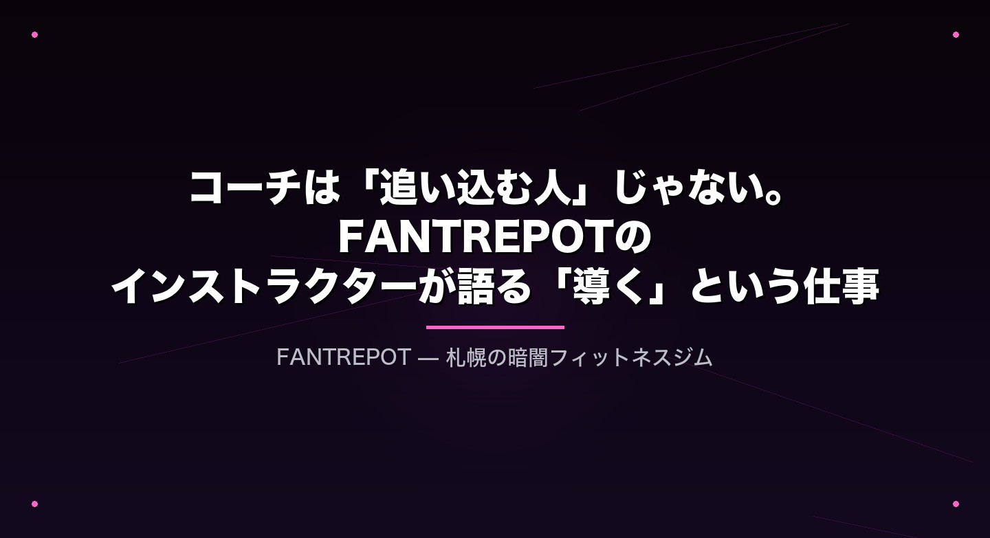 少しの変化、それは一歩ずつ強くなっている証なんだ。 A little change, that's a sign that we are getting stronger step by step. まずは無料体験へ VOICE 2024.09.25 準備中 一覧はこちら About us もっと、もっと前に進め。 人間は怠惰だ。だから必死に向き合う。それがいつだってかっこいいと我々は思う。形じゃない、スタンスだ。そして、そこに意味がある。 我々の想い~詳細へ~ Service Menu 提供できるサービス 詳しくはこちら Program 20種類超のプログラム 詳しくはこちら Voice 会員様のお声 詳しくはこちら Contents ライフスタイル 運動 なぜ「暗闇」だと人は本気になれるのか。匿名性と没入の心理学 2026.04.09 ライフスタイル 健康習慣 なぜ「暗闇」だと人は本気になれるのか。匿名性と没入の心理学 2026.04.09 ライフスタイル 運動 「殴っていい場所」がこの街にはある。ボルトボックスという衝動の受け皿 2026.04.06 ライフスタイル 運動 「殴っていい場所」がこの街にはある。ボルトボックスという衝動の受け皿 2026.04.06 ライフスタイル 札幌ライフ・ローカル情報 札幌の冬は長い。だから室内で「全力」を出せる場所が必要だった 2026.04.02 もっと見る