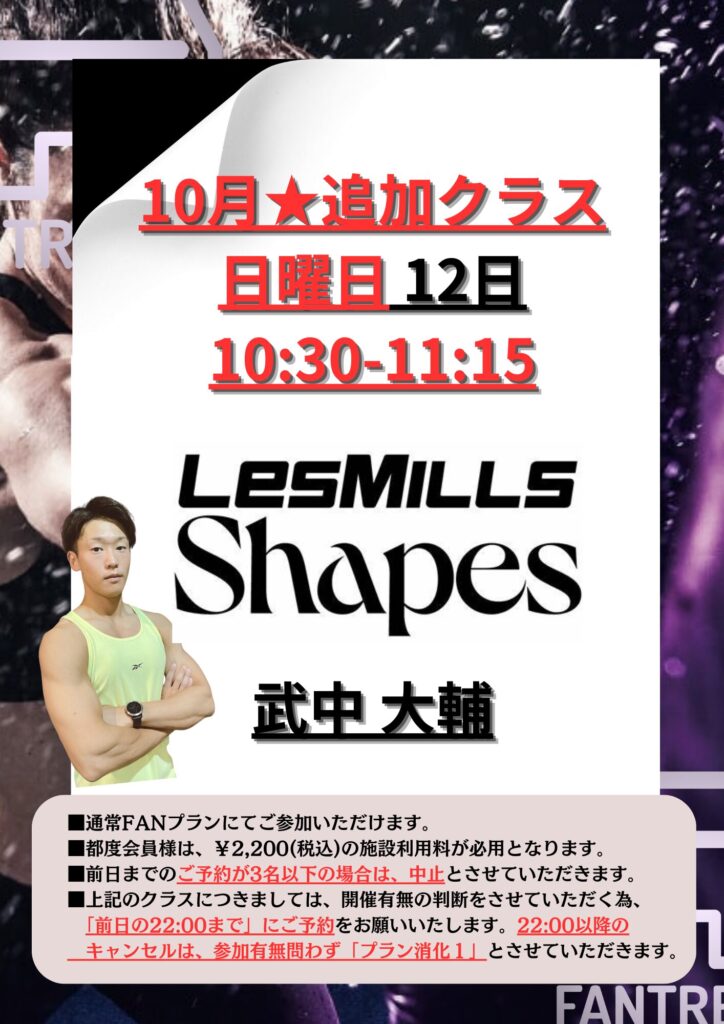 10月通常タイムスケジュール「追加クラス」のご案内です。