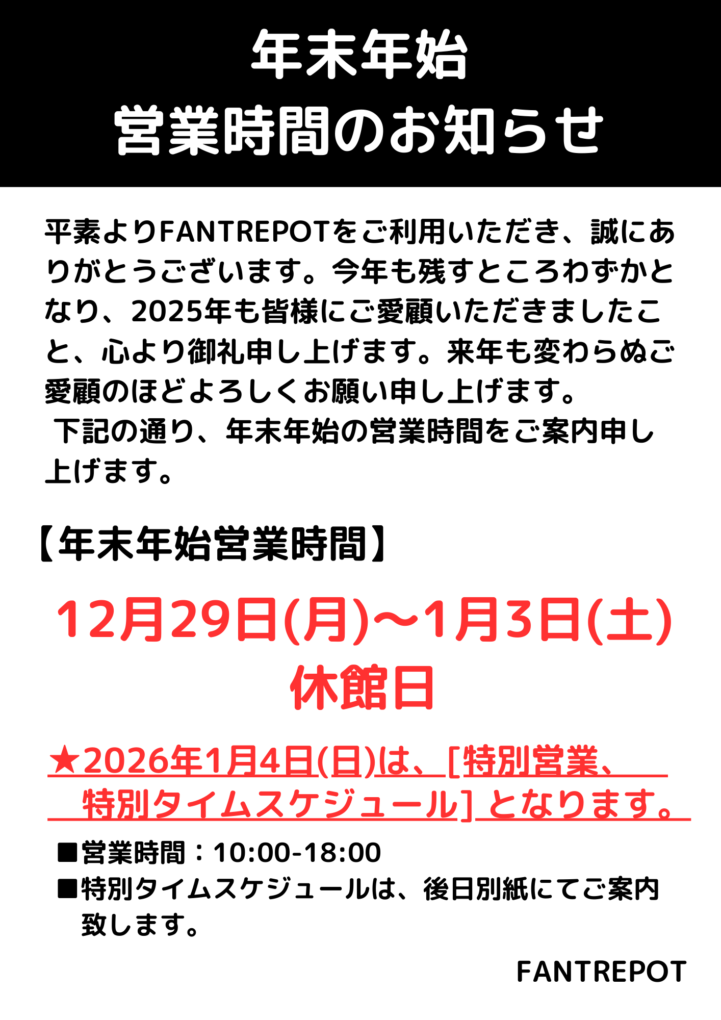 年末年始営業のご案内