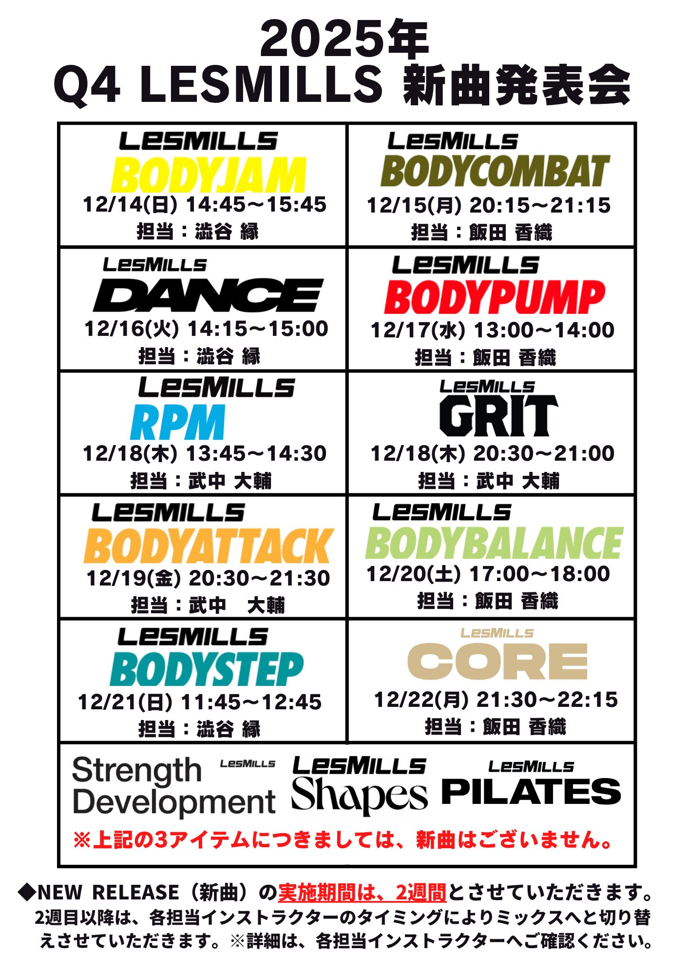 2025年 Q4 LESMILLS 新曲発表会スケジュール